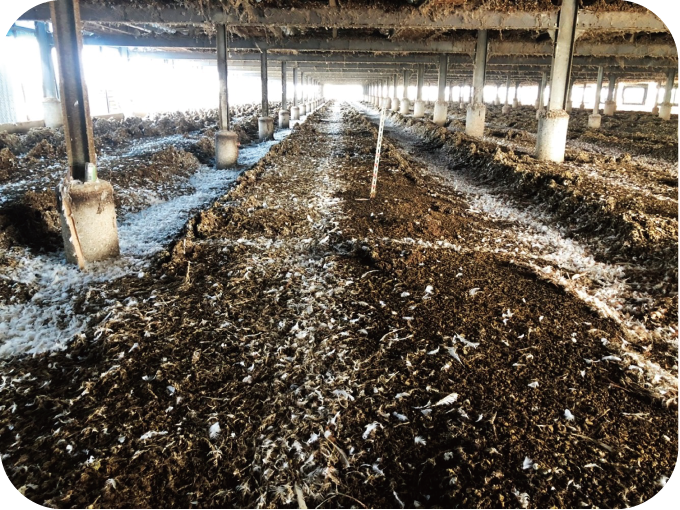 大型開放式場域使用情境,左圖為投放蟲苗前,右圖為三周後分解狀況,適用對象如蛋雞場等。
