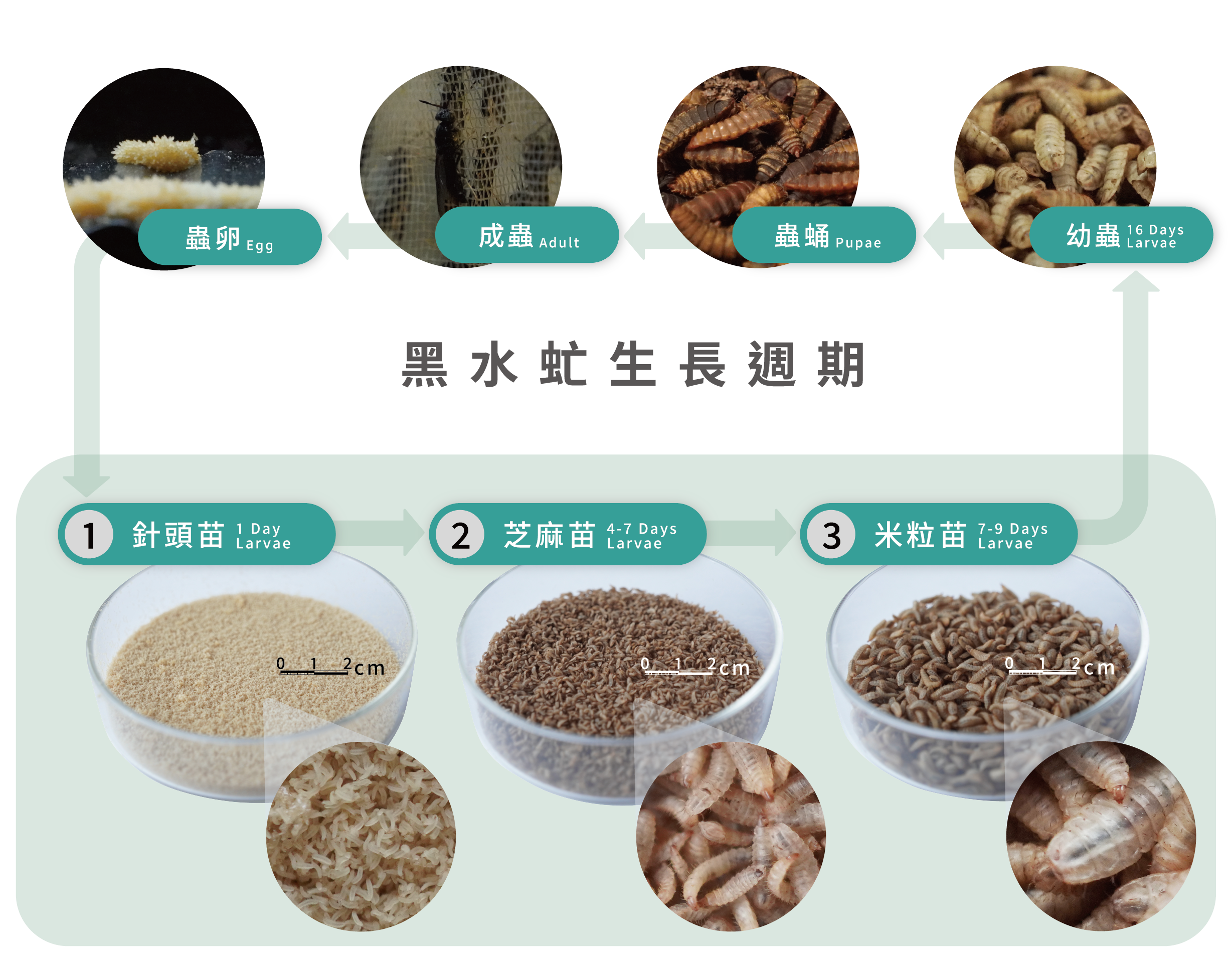 循創苗栗廠於2024年起轉型為「黑水虻種原中心」,獨創以幼齡蟲苗作為輸出規格,同時確保了供應穩定、操作方便、高存活率、數量保證可驗算以及經濟實惠的價格。